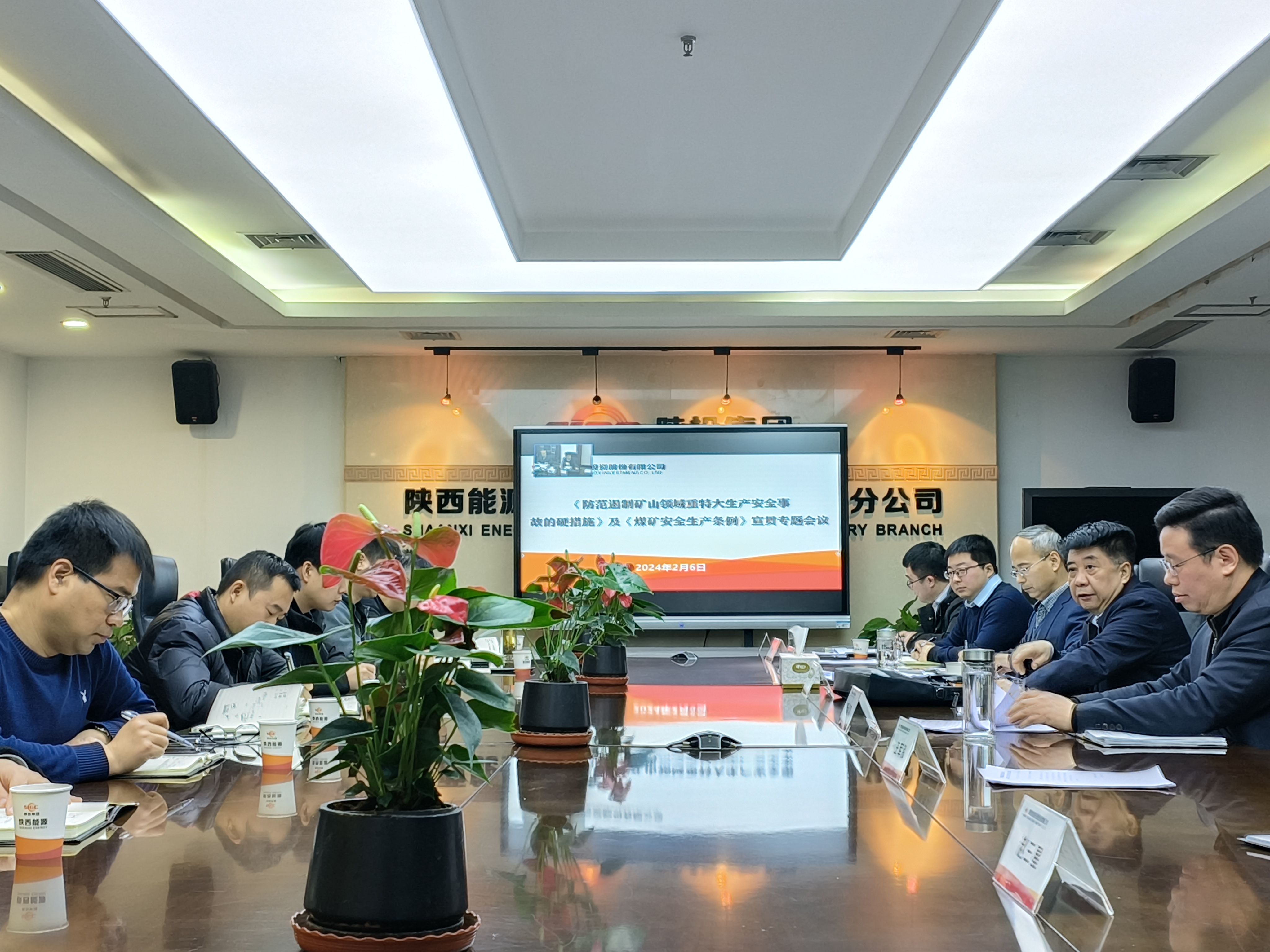 2月6日,陕西能源学习宣传贯彻《防范遏制矿山领域重特大生产安全事故的硬措施》(以下简称硬措施)及《煤矿安全生产条例》(以下简称条例)专题会议在陕西投资大厦16楼会议室召开,会议全面解读了《硬措施》《条例》,观看学习了安全警示教育片,公司总经理、安委会主任王栋作总结讲话。