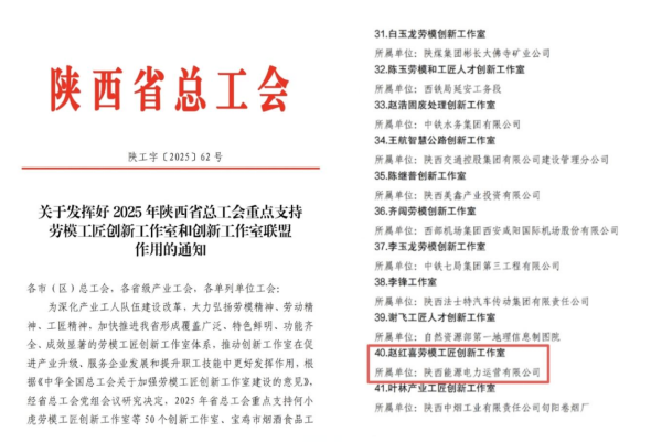 近日,电力运营“赵红喜劳模工匠创新工作室”成功获评2025年陕西省总工会重点支持劳模工匠创新工作室,并获3万元专项资金支持。