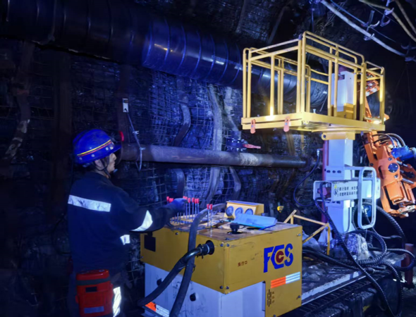 本轮次实施的顶板深孔爆破作业针对井下深部坚硬岩层难破断、常规卸压手段治理效果差等技术难题开展。为确保安全高效作业,公司多次组织召开专题会,相关单位协同联动,不断优化完善爆破作业方案;在作业前对全体参与人员进行详细的安全技术交底,对钻机、装药车、注浆泵等设备全面检修测试;作业期间持续优化施工参数,制定安装集气罩和气体拦截装置等防止有害气体外溢的应急防范措施,安排专人紧盯钻孔装药、注浆封孔等爆破关键环节,为爆破作业筑起了坚实的技术与安全防线。