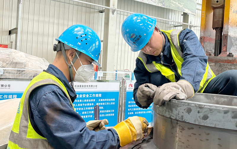 “我们再重新调整,确认各轴瓦处顶起高度是不是合适。顶轴油压降低会影响盘车运行,汽轮机也无法冲转。虽然离交工只有2天了,但与工期相比,检修质量更是重点。”电力运营麟北项目部汽机主管工程师范智杰说。